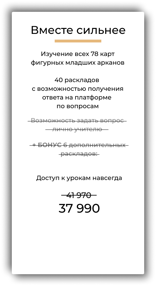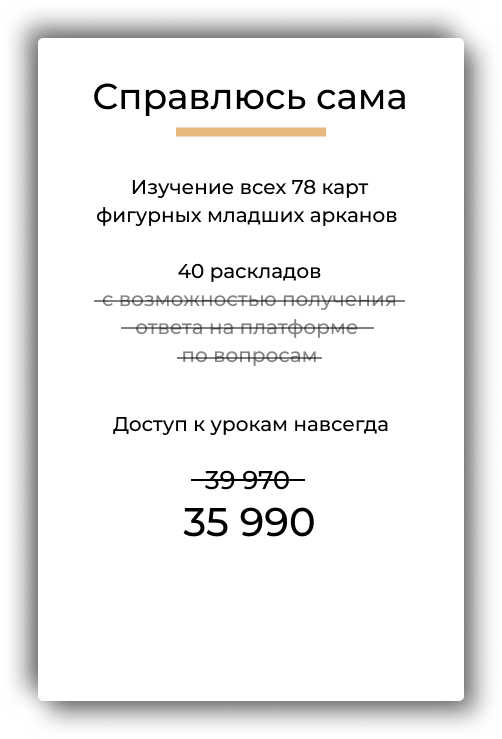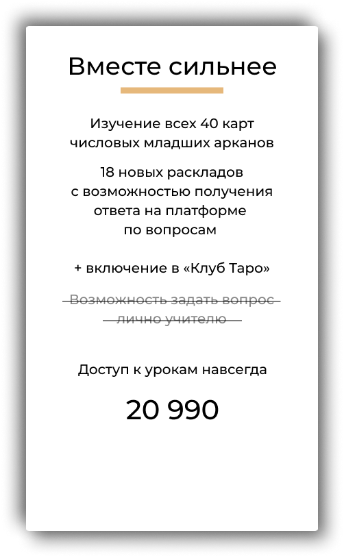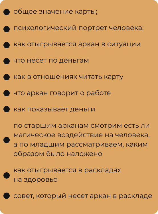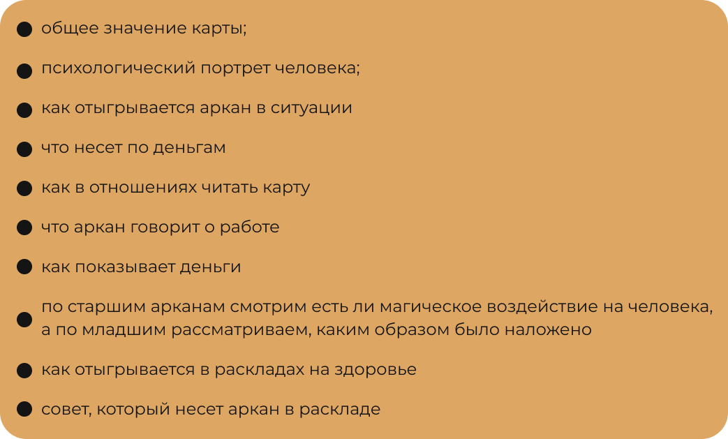 Каждую карту мы рассматриваем детально, и не ждите, что всего за 5 уроков вы освоите всю колоду – это миф или маркетинговый ход.